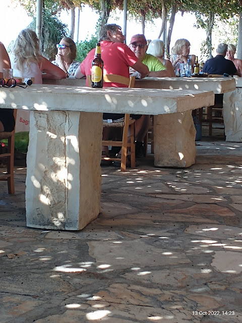 All the tables are like Fred Flinstone things - GREAT BIG thick slabs of stone, from four seaters, to huge affairs, that will seat up to twenty!